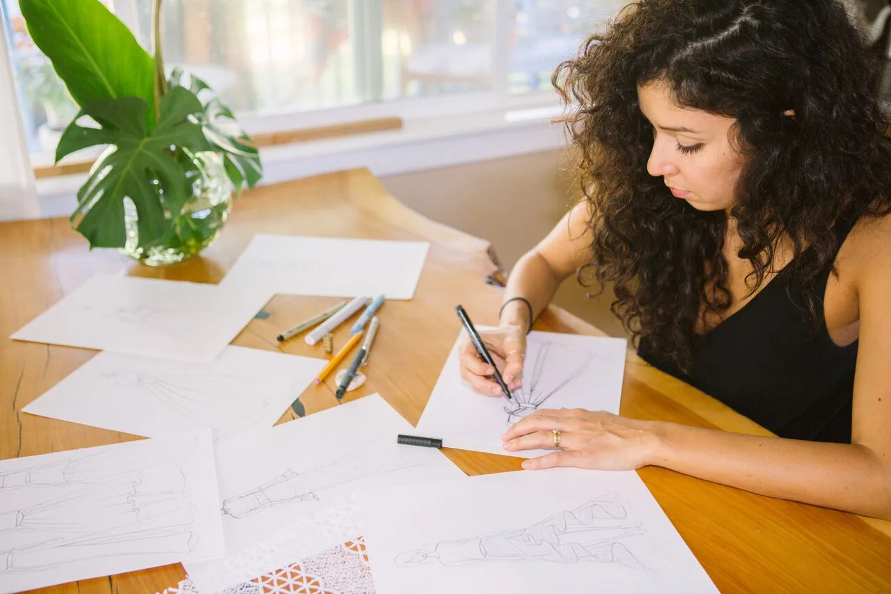 Rachel began sewing as an early teen, taught by her mother, who had learned from her own mother. She scoured Walmart for fabric, making pajama pants for friends and dresses to wear for Christmas Eve service. After high school, Rachel attended the Fashion Institute of Design and Merchandising, taking an internship that landed her a spot at Bebe after graduating in 2008, then a designer role at Juicy Couture. “I love the process, from going to get fabric to patternmaking to draping to making the actual garment,” Rachel says.